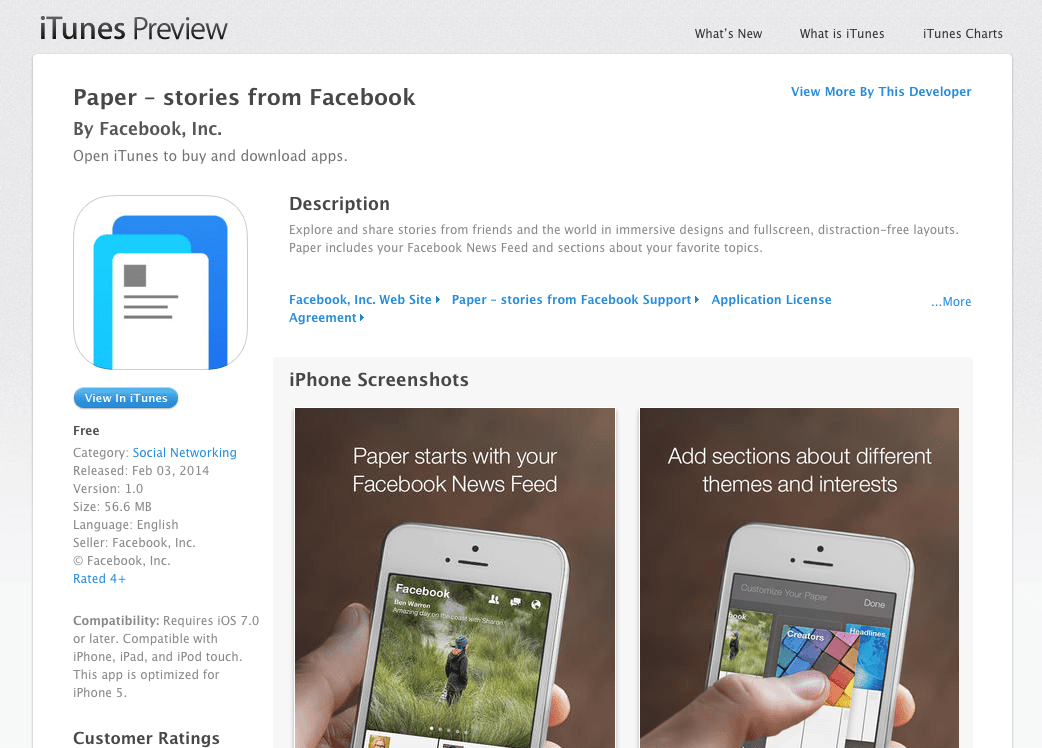 それぞれのセクションにはFacebookの編集者が選んだものと、そして出版者やブロガー、著名人などが公に投稿したものからPaperのアルゴリズムが選別してくるものが併せて掲載される。New York Timesなどのような大手の記事を流していくだけでなく、これまで目にしたことのなかったブロガーのの記事や、その筋の権威からのコメント、あるいは一般の人からの意見などもあわせて載せていこうとするわけだ。